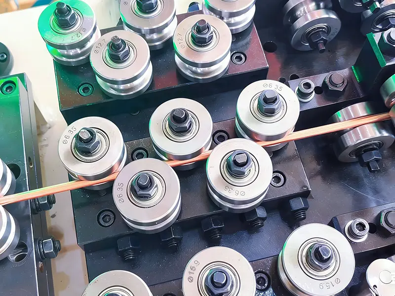 GRM రోలింగ్ మిల్ కర్మాగారం దీర్ఘచతురస్రాకార అయస్కాంత వైర్ల యొక్క ఖచ్చితమైన ఏర్పాటు కోసం రూపొందించబడిన అధిక-ఖచ్చితమైన విద్యుదయస్కాంత వైర్ రోలింగ్ మిల్లును అందిస్తుంది. పరికరాలు ఎక్స్ట్రాషన్ లేదా కోల్డ్ రోలింగ్ ప్రక్రియలను ఉపయోగిస్తాయి మరియు బహుళ రోలింగ్ పాస్ల ద్వారా వైర్ ఖచ్చితమైన మూలలో ఆకారాలను కలిగి ఉండేలా చేస్తుంది మరియు ఎనామెల్డ్, పేపర్ లేదా పాలిస్టర్ ర్యాప్తో ఇన్సులేట్ చేయబడుతుంది. రోలింగ్ మిల్లు అద్భుతమైన కాయిల్ సాంద్రత మరియు ఇన్సులేషన్ నాణ్యతను నిర్ధారించడానికి అధిక-ముగింపు మందం మరియు వెడల్పు నియంత్రణ వ్యవస్థను కలిగి ఉంది మరియు మోటార్లు, ట్రాన్స్ఫార్మర్లు మరియు ఇన్వర్టర్ల వంటి అధిక-పనితీరు గల ఎలక్ట్రికల్ పరికరాల తయారీలో విస్తృతంగా ఉపయోగించబడుతుంది.